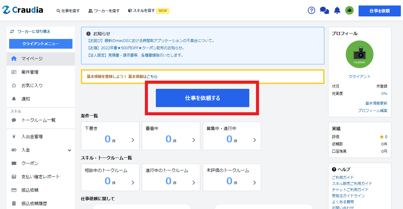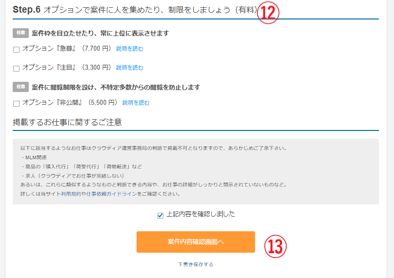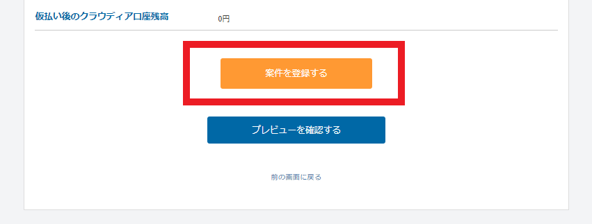 依頼内容を確認し、問題がなければ「案件を登録する」をクリックしてください。