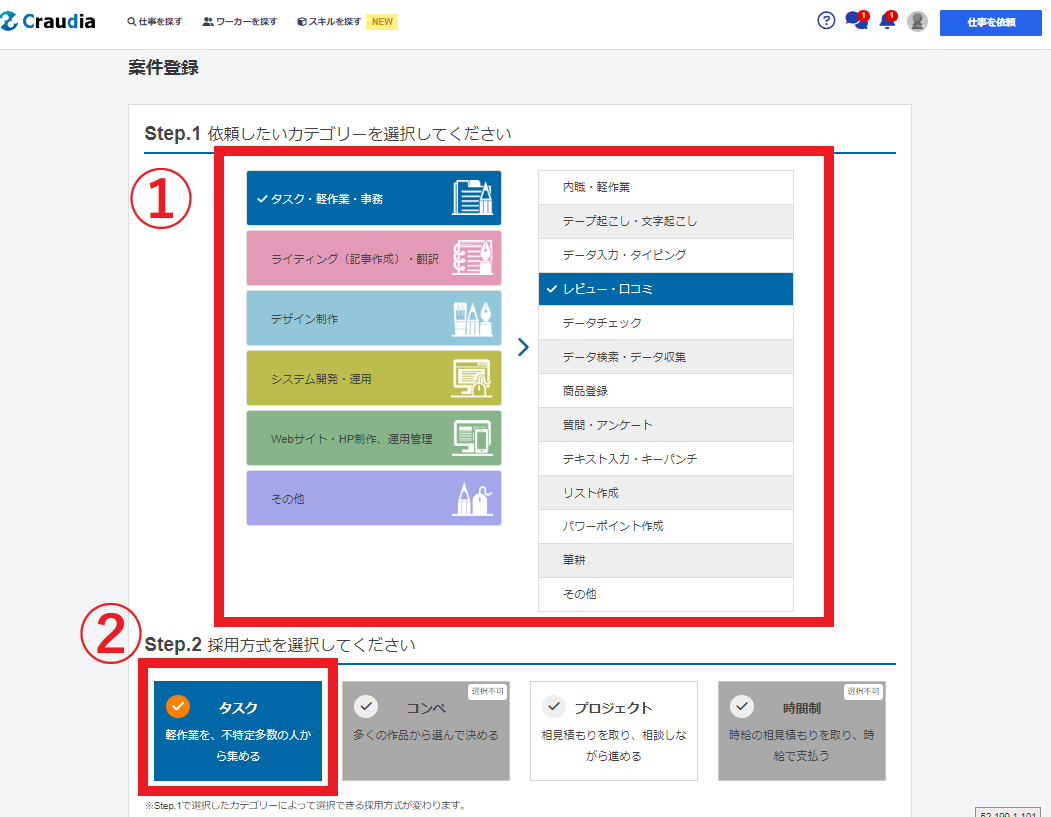 タスク方式はワーカーを選ぶ作業や相談なく、納品される制作物を採用する方式です。
